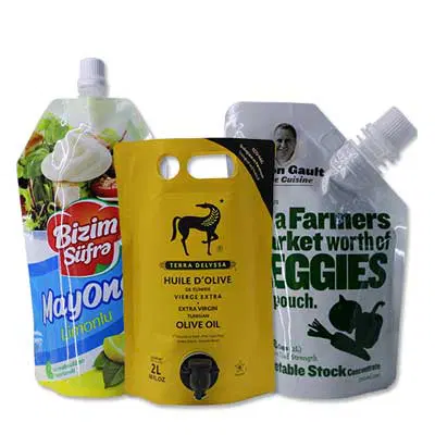 A spout pouch is a type of liquid packaging that features a built-in spout that can be used to pour the liquid out of the package. These pouches are usually made by plastic injection molding and are commonly used for products like sauces, mustard, and soy sauce.