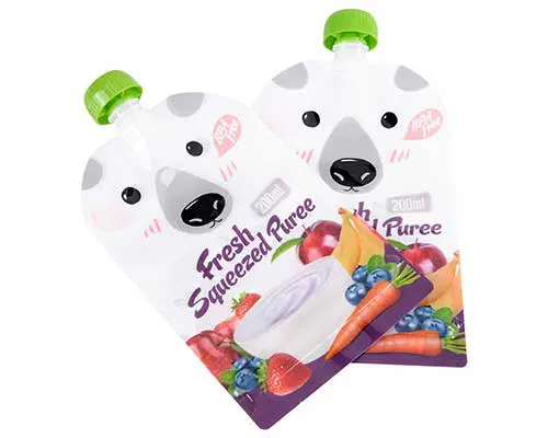 Shaped spout pouch is a perfect packaging option for liquid food. It is durable, eco-friendly and light weight.
